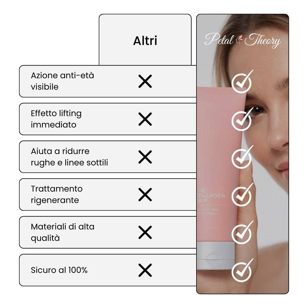 Da quando uso questa maschera la mia pelle è diventata più elastica e compatta, le rughe sottili sono meno visibili e sapere che il prodotto è completamente testato e sicuro mi fa sentire tranquilla ogni volta che lo applico.